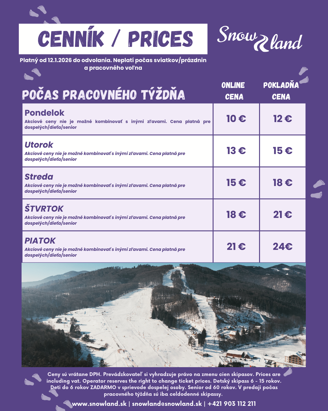 Skipas je platný na konkrétny deň, ktorý si zvolíte pri nákupe. Skipas je neprenosný a platí len pre osobu, na ktorú bol vydaný. V prípade straty alebo poškodenia karty sa záloha nevracia. Záloha vo výške 5€ sa Vám automaticky pripočíta do košíka.